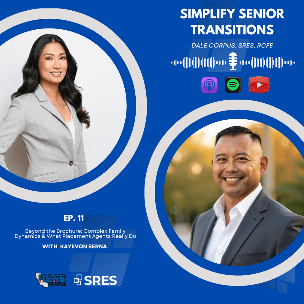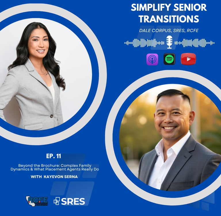 That’s why we welcomed Kayevon Serna, a senior placement specialist, to the Simplify Senior Transitions Podcast. Hosted by senior transition specialist Dale Corpus, this episode unveils the "invisible challenges" families face. Kayevon’s unique blend of over a decade working directly with older adults and her healthcare administration background makes her the compassionate and strategic guide families need.