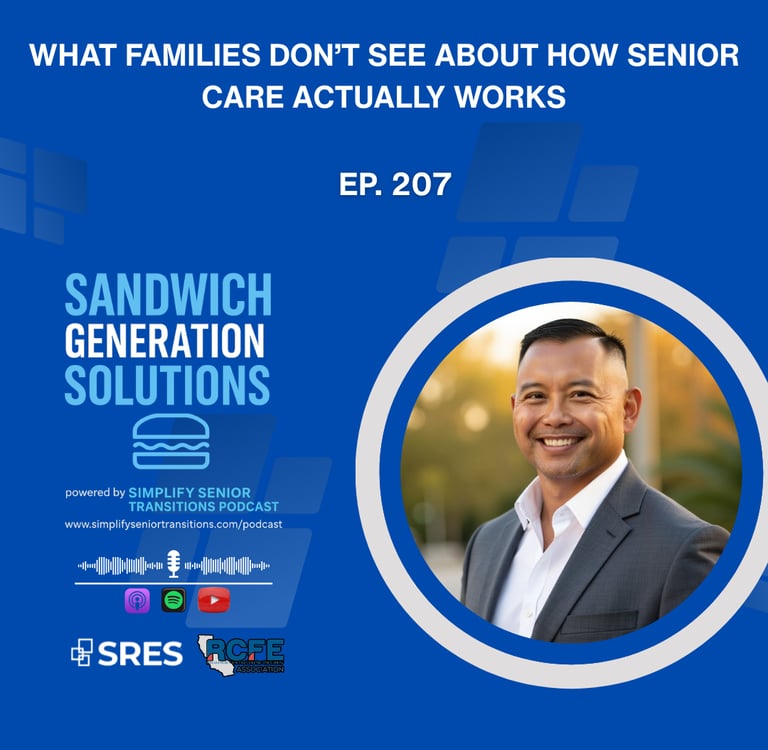 In the latest episode of Sandwich Generation Solutions, powered by the Simplify Senior Transitions Podcast, Bay Area senior transition specialist Dale Corpus pulls back the curtain on how the senior care ecosystem actually works.
