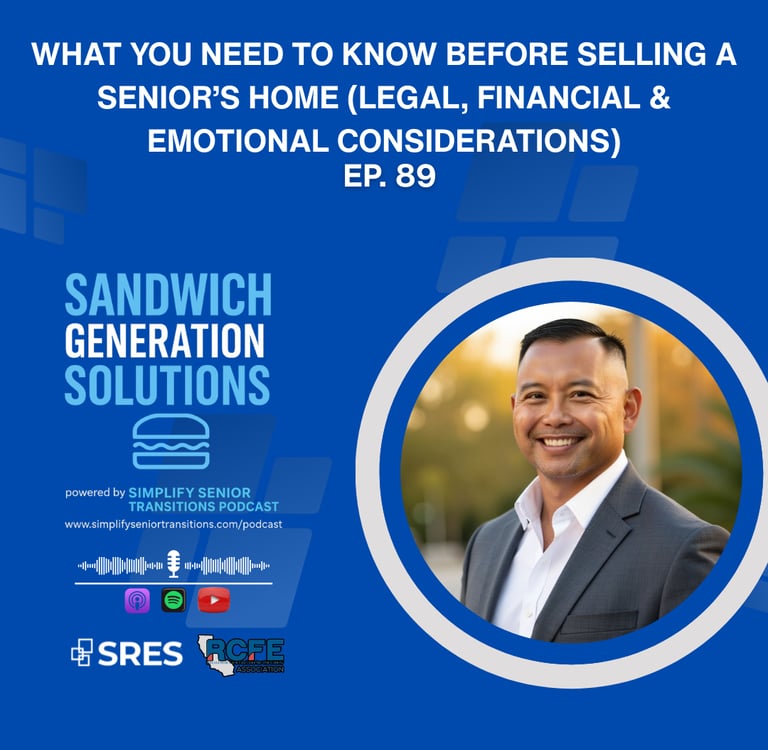 As a Senior Transition Specialist based in San Ramon, California, I’m Dale Corpus, and I help families just like yours navigate the home selling process during this critical transition. We often find that families don't realize the depth of the challenges they face until they are deep in the middle of them. That’s why our latest episode broke down the essential steps for moving forward with confidence and clarity.