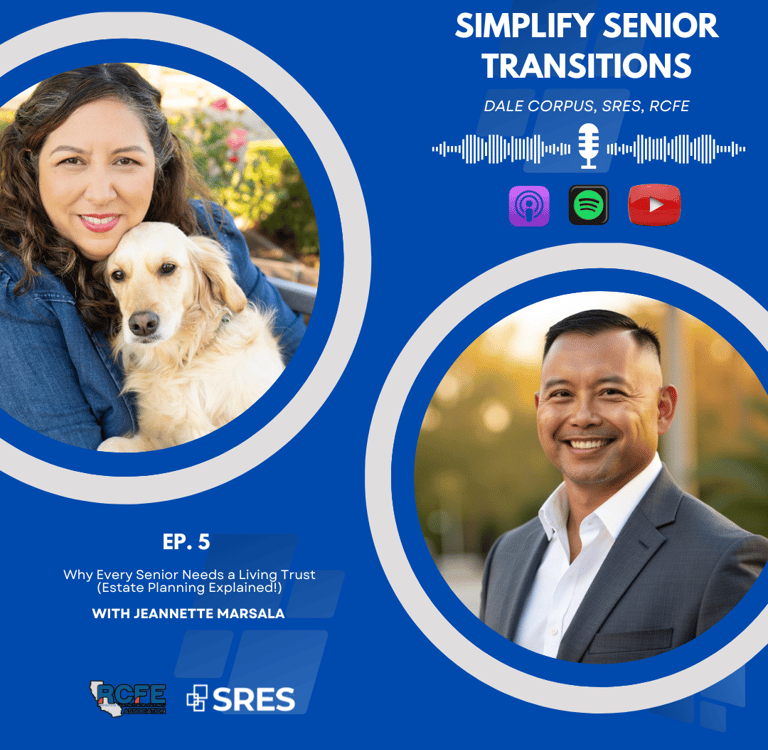 On a recent episode of the "Simplify Senior Transitions" podcast, hosted by our very own Dale Corpus, we had the privilege of hearing from Janette Marsala, an experienced estate planning attorney. Janette's expertise goes beyond legal documents; she’s passionate about helping families proactively avoid pitfalls and has a deep understanding of the senior care industry. Her insights are invaluable for any family caregiver, especially those of us here in the San Francisco Bay Area (Contra Costa, Alameda, Santa Clara, San Mateo, San Francisco, Solano, and Napa counties), grappling with these important decisions.
